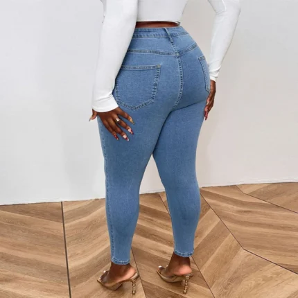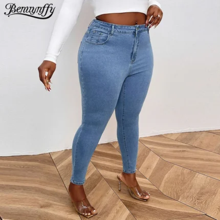 Benuynffy Plus Size Mid Waisted Retro Washed Skinny Jeans Women 2025 Spring Summer Casual Streetwear Ankle-length Pencil Pants