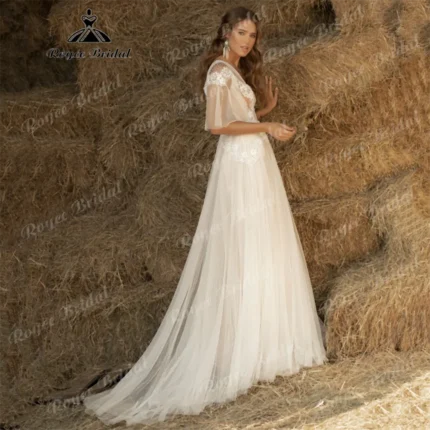 Customized Boho A Line Wedding Dress Allure Lace V Neck Half Sleeves Bridal Gown For Women Sweep Train vestidos de novia