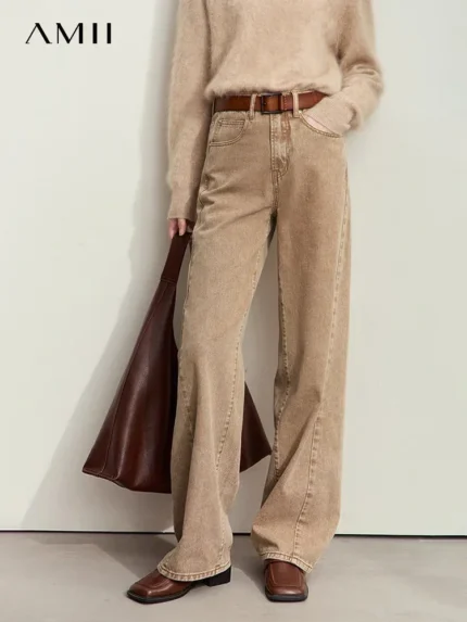 Amii Minimalism Women’s Jeans 2024 Autumn New Casual Cotton Denim Pants Retro Trendy Loose Straight Wide-leg Trousers 12443249