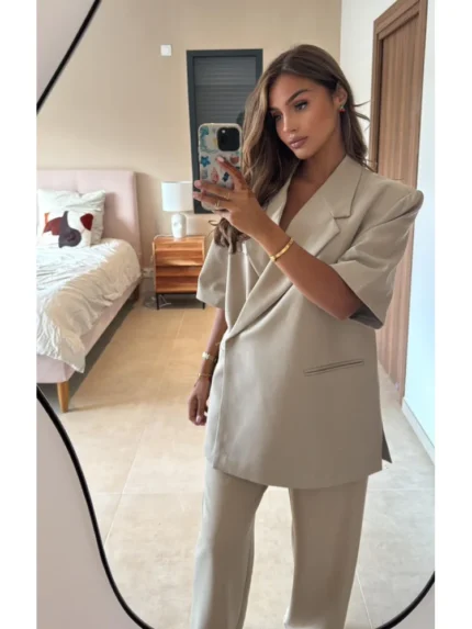 Female Chic Short Sleeves Suit Lapel Single Button Loose Blazer Coats Casual Versatile Women’s Coat Spring Summer New Jackets