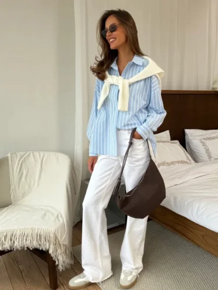 New Summer Women’s Fashion Striped Shirt,Long Sleeve Shirt Woman,2025 Woman’s Clothing,Summer Tops,Casual Tops For Ladies