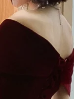 Home 👗 Women’s Fashion Dresses & Gowns Lautaro Spring Long Luxury Elegant Wine Red Soft Velvet Evening Party Wedding Dresses for Women 2022 Off Shoulder Maxi Dress