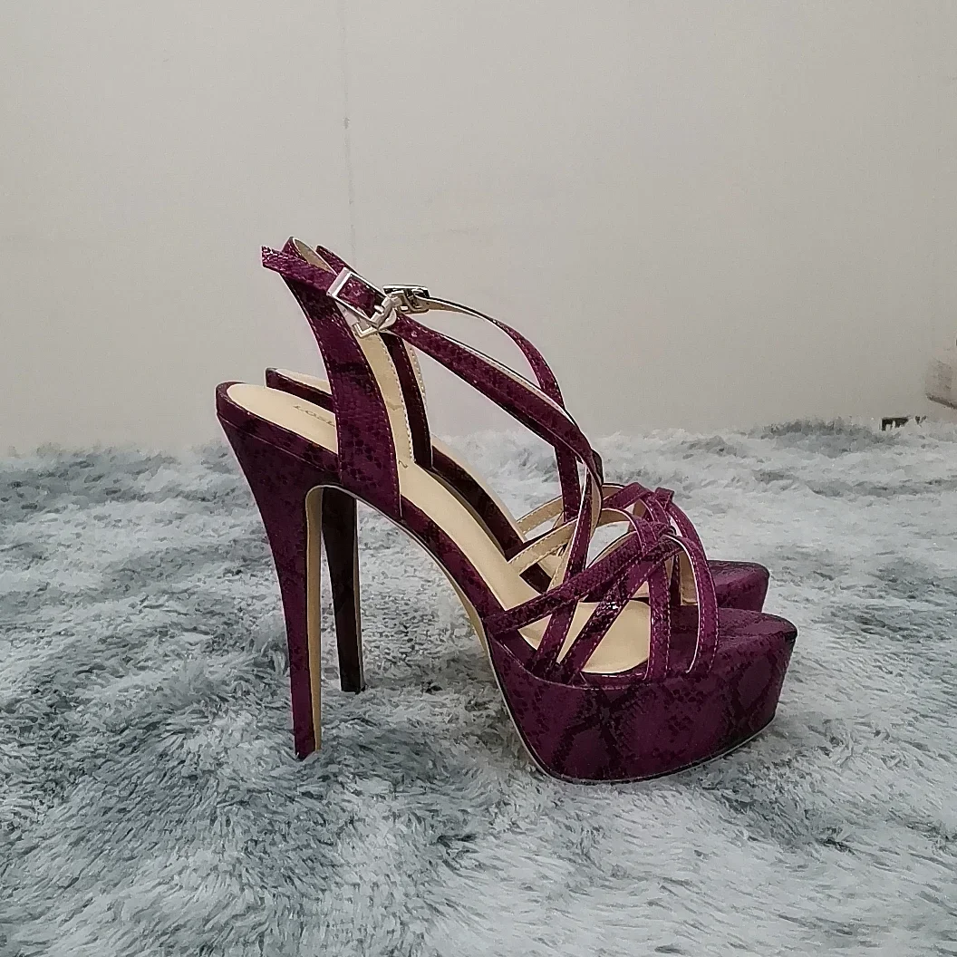 LOSLANDIFEN 2025 NEW 14CM Open Toe Platform High Heels Snake Pattern Sandals Sexy Ankle Strap Gladiator Party Dress Women Shoes