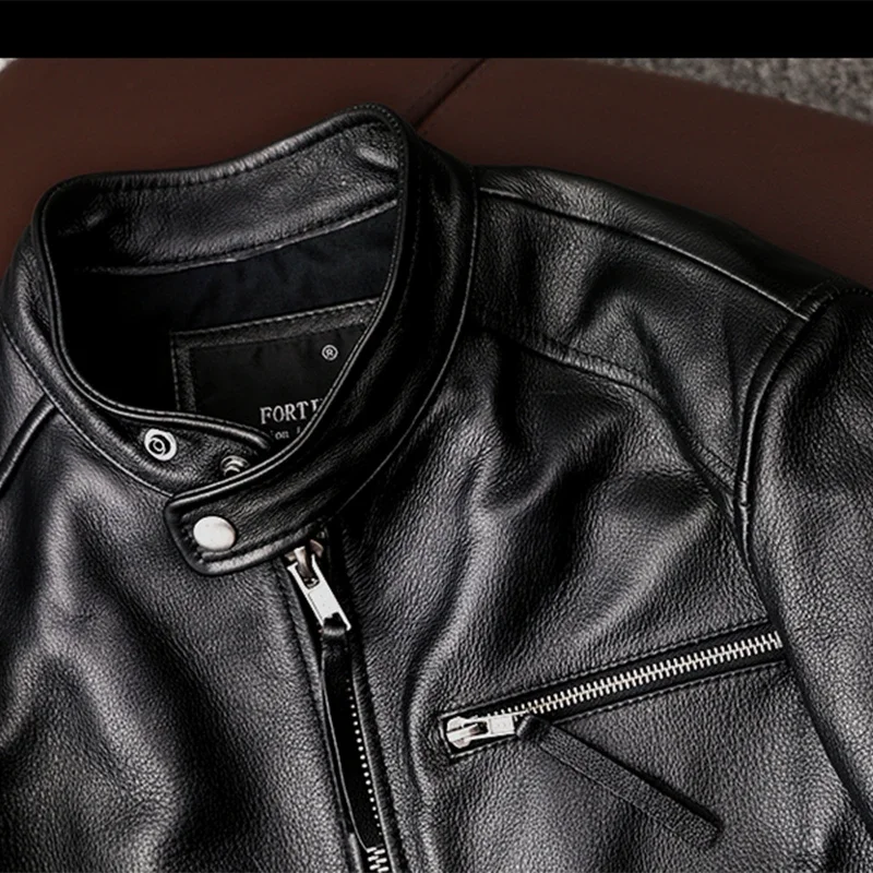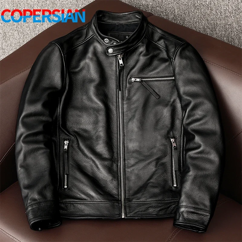 New trendy pure top layer soft cowhide genuine leather jacket men’s slim-fit stand-up collar leather jacket coat
