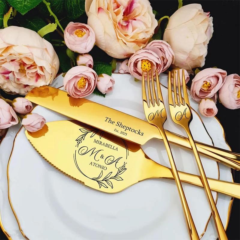 - Personalized Wedding Cake Cutting Set: Custom Fork Stainless Steel Knife Spatula Set with Gift Box