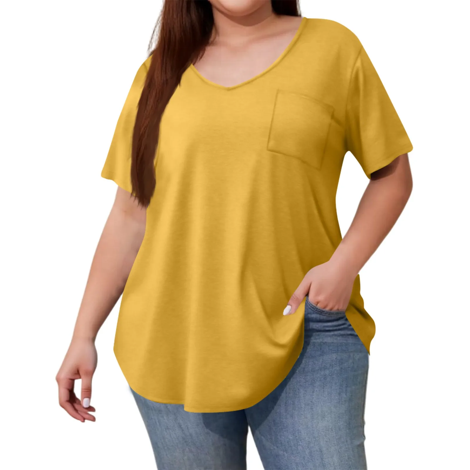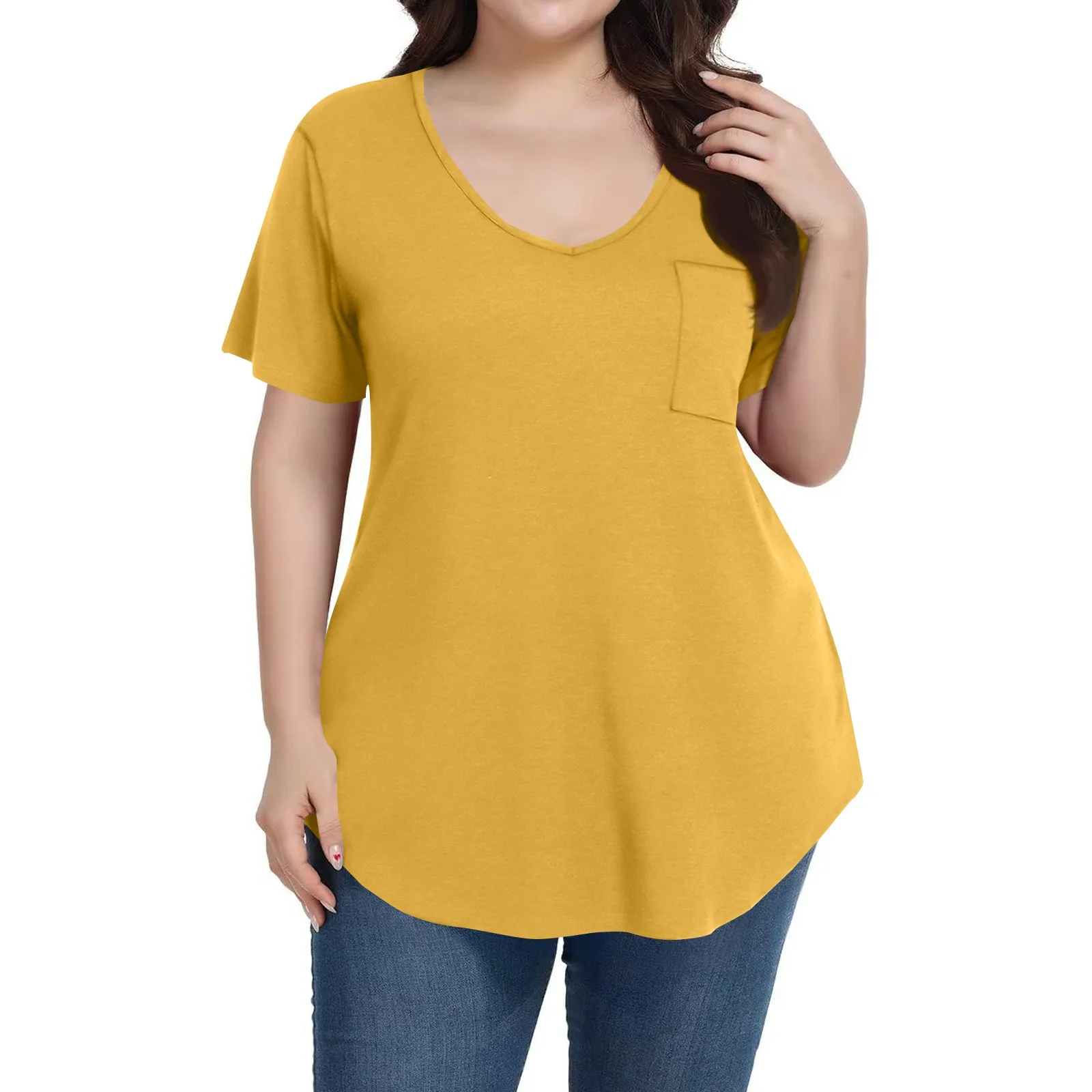 Plus Size Women’s Tunic Tops Solid Color Large Size V-neck Loose T-Shirt With Pocket Summer Casual Basic Tee t shirts