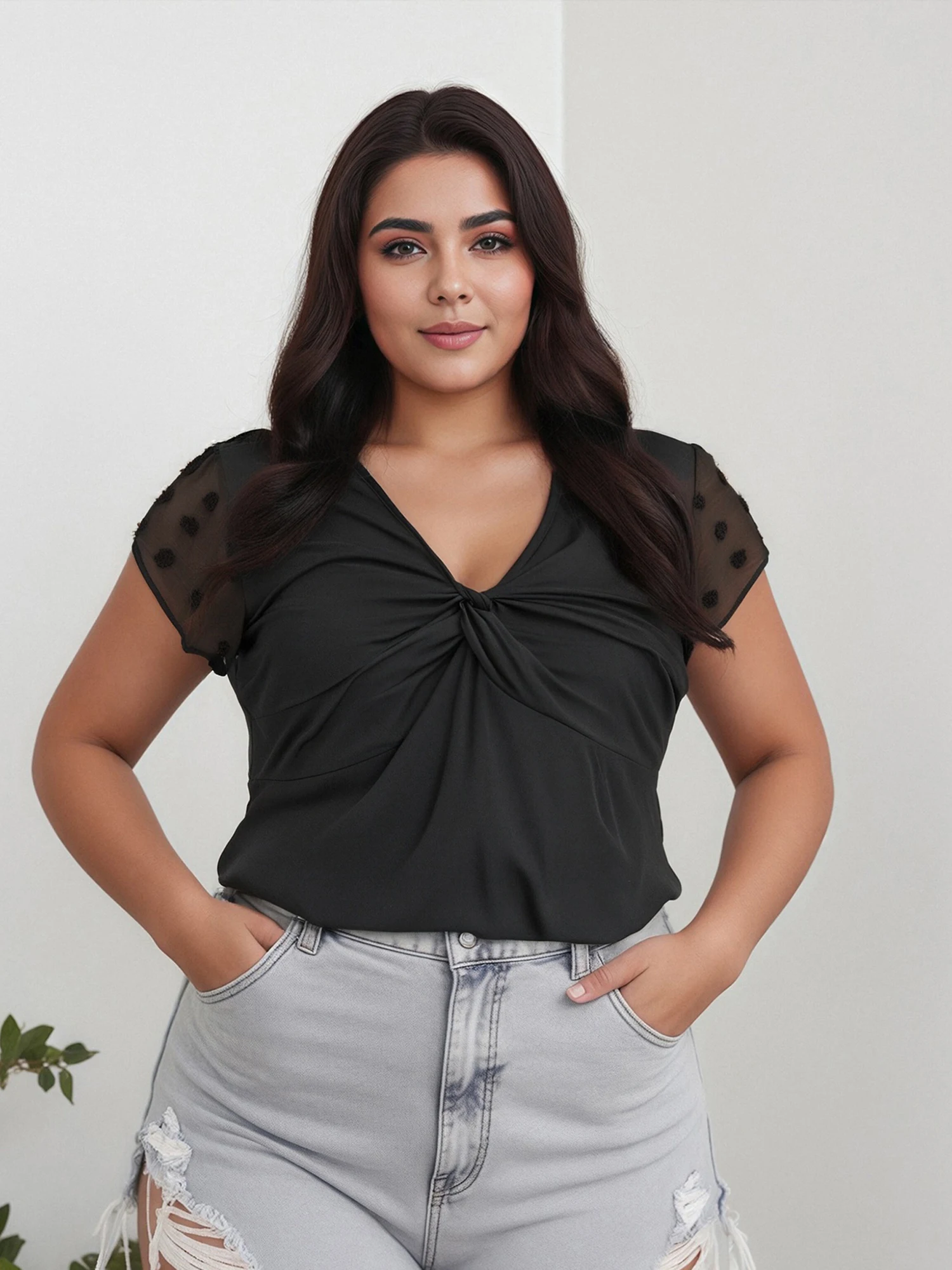 Be the first to review “Women s Plus Size Summer Tops Twist Front V Neck Curved Hem Patchwork Mesh Short Sleeve Blouses with Floral Print” Cancel reply